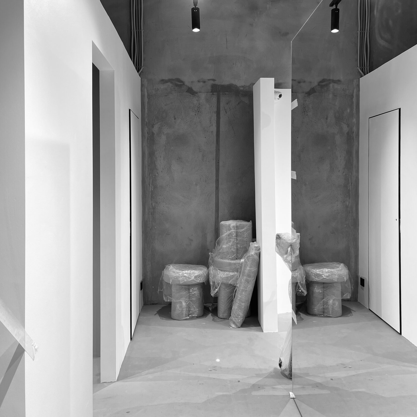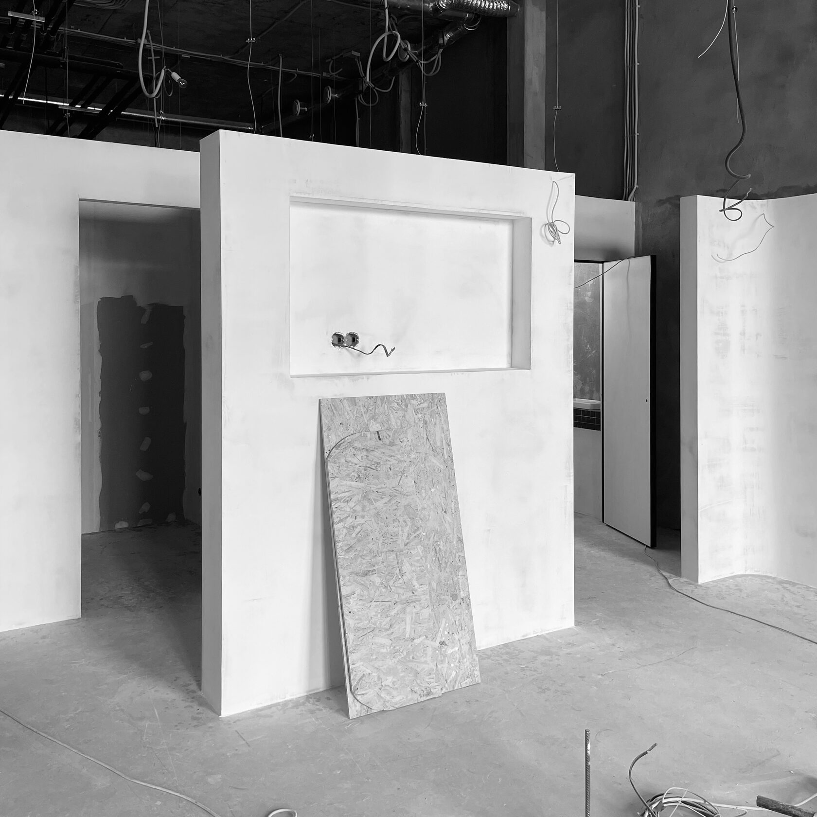 We decided to leave the concrete in its natural state and construct new white walls that don’t reach the full height of the room. This solution helped us achieve multiple objectives: reduce costs on wall finishing and create a visual contrast between the existing and new walls, thereby emphasizing the beautiful natural texture of the concrete.