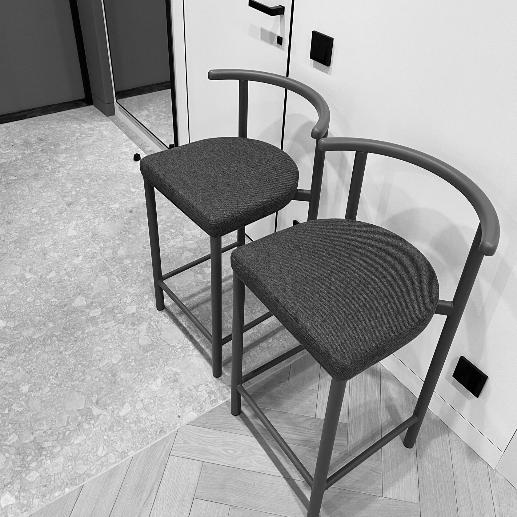 Прихожую зрительно объединили с кухней-гостиной благодаря широкому проему без двери. Такое решение визуально расширило пространство и добавило «воздуха». Также при входе в квартиру мы устроили отдельную гардеробную для верхней одежды и хоз. блок. В санузле у нас компактно получилось разместить душевую, шкаф со стиральной и сушильной машинами и большую раковину с хранением.