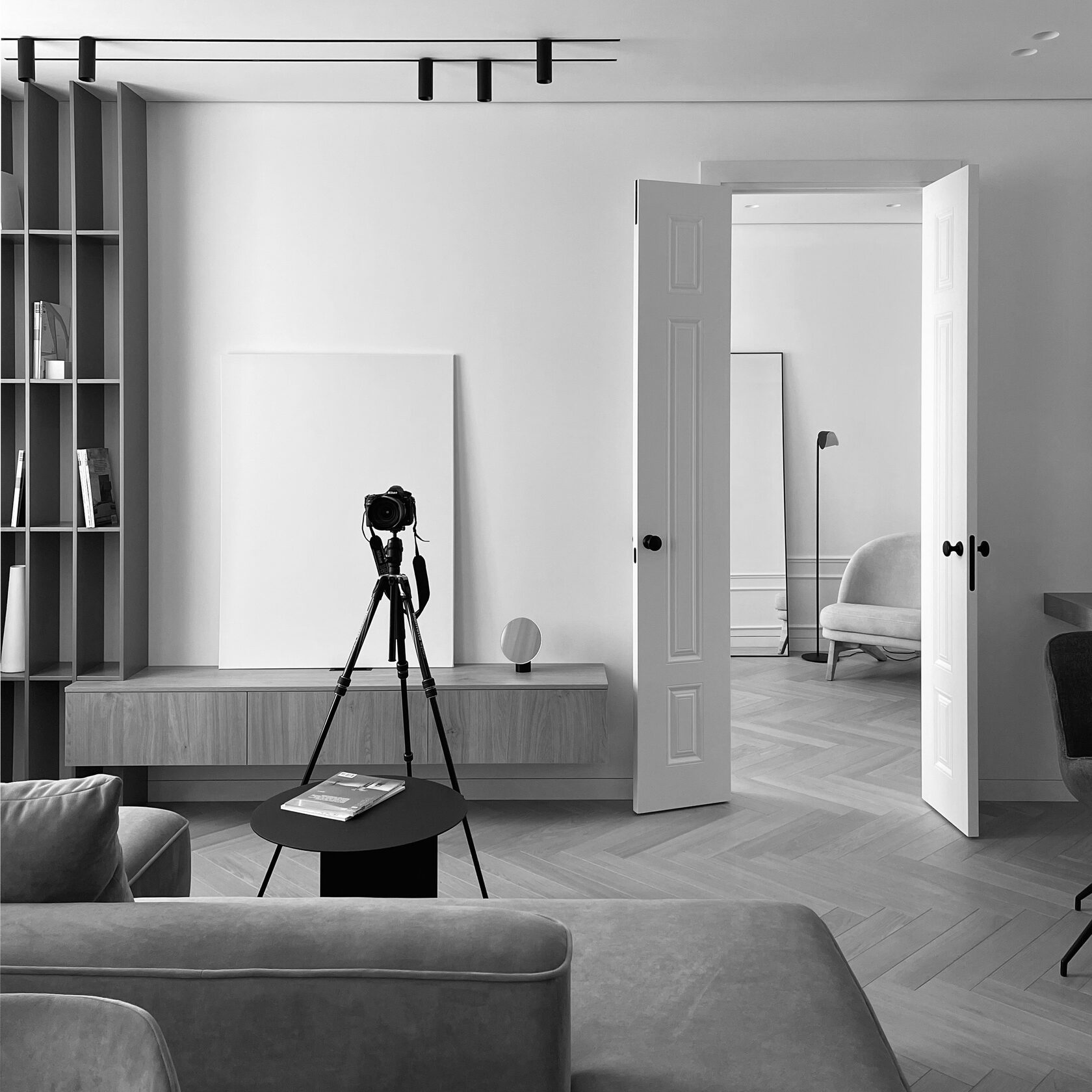Особенность проекта — яркая квартира, которая сочетает в себе классические детали и минимализм.